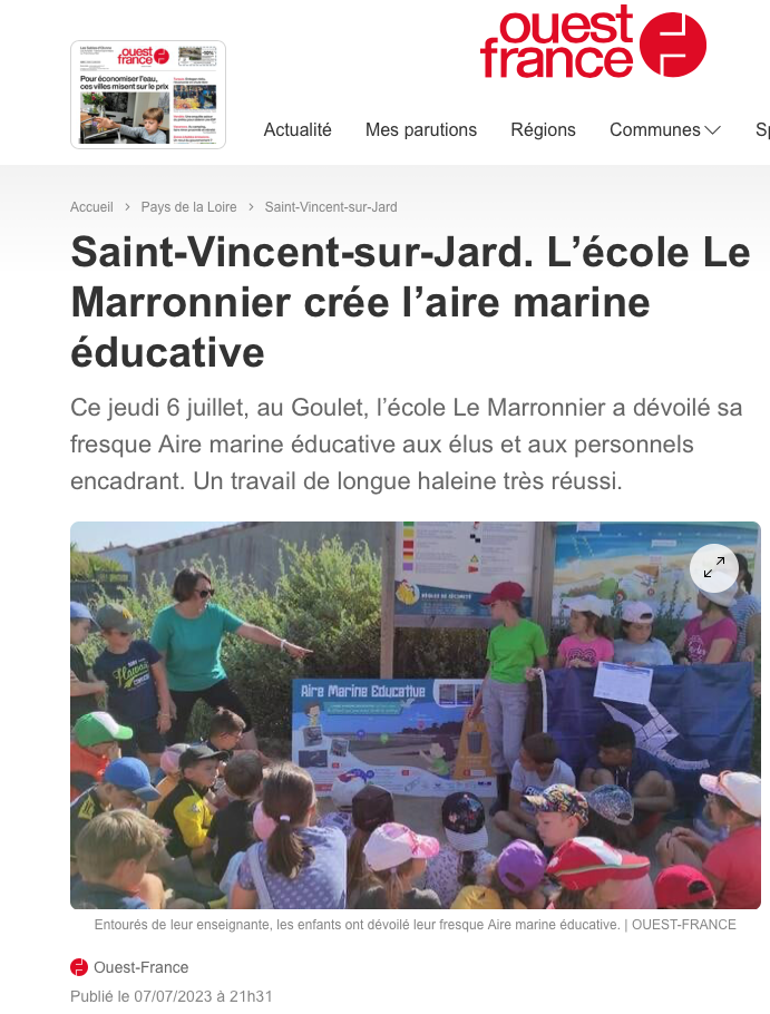 actualités Saint-Vincent-sur-Jard. L’école Le Marronnier crée l’aire marine éducative 11 juillet 2023 /